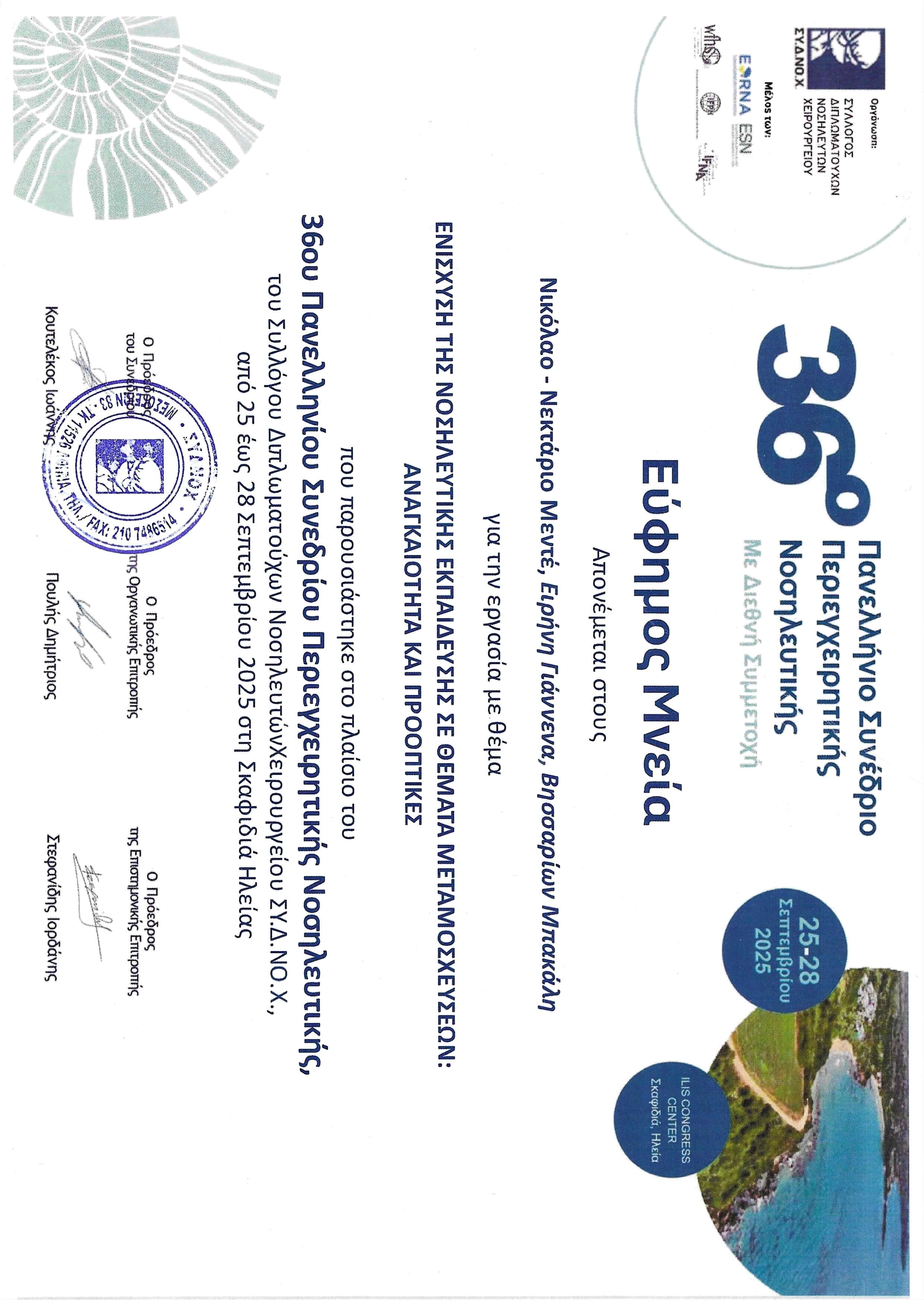 τους με τίτλο «Ενίσχυση της Νοσηλευτικής Εκπαίδευσης σε θέματα μεταμοσχεύσεων: