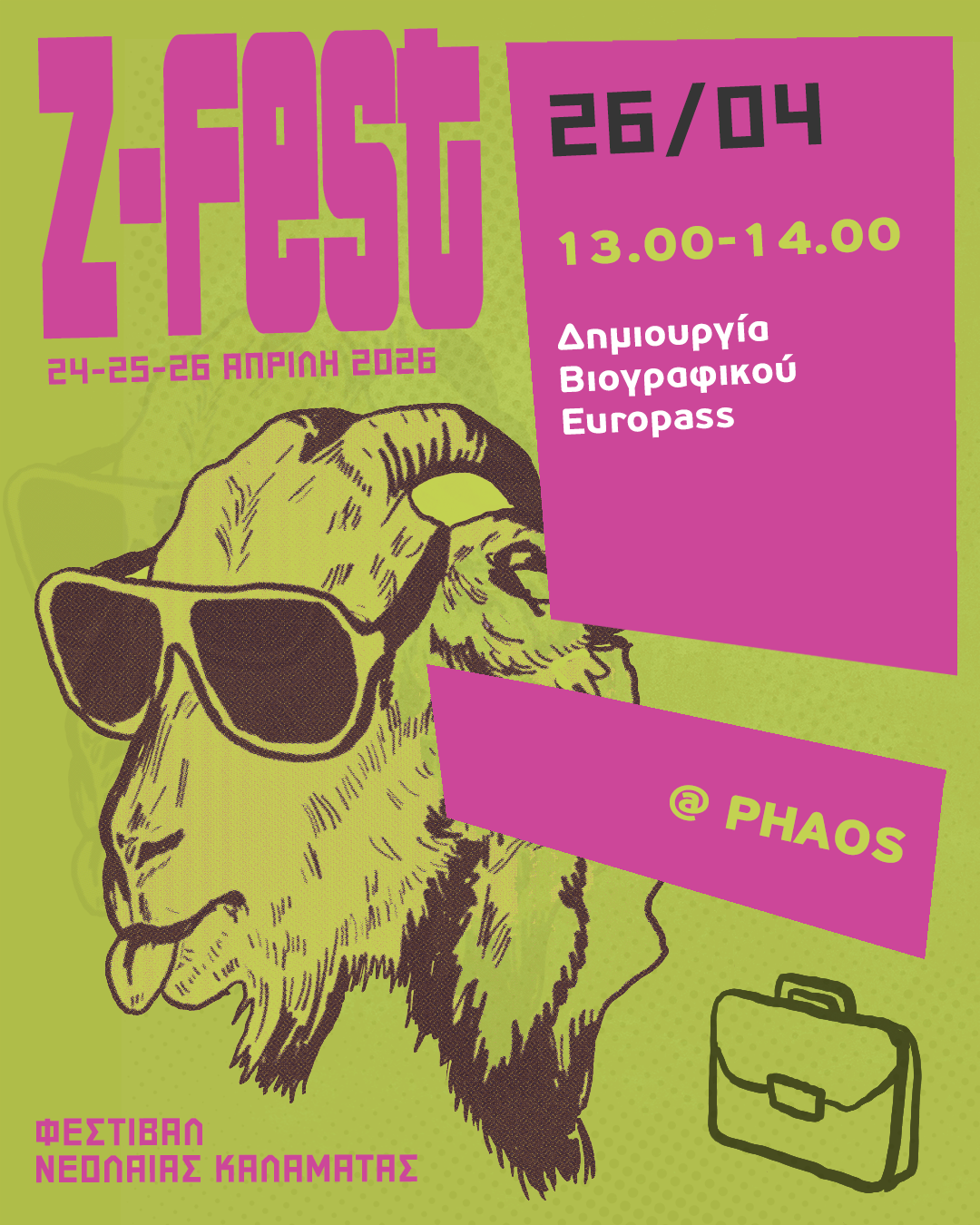 ✔️ Το 2o εργαστήριο αφορά τη δημιουργία βιογραφικού Europass και θα πραγματοποιηθεί την Κυριακή 26 Απριλίου 2026, 13.00-14.00, Phaos (Διεύθυνση: Σφακτηρίας 18, 24 133 Καλαμάτα). Αν θέλετε μπορείτε να δηλώσετε συμμετοχή στην παρακάτω φόρμα: https://forms.gle/BBxXDa6xRPmMLc247.